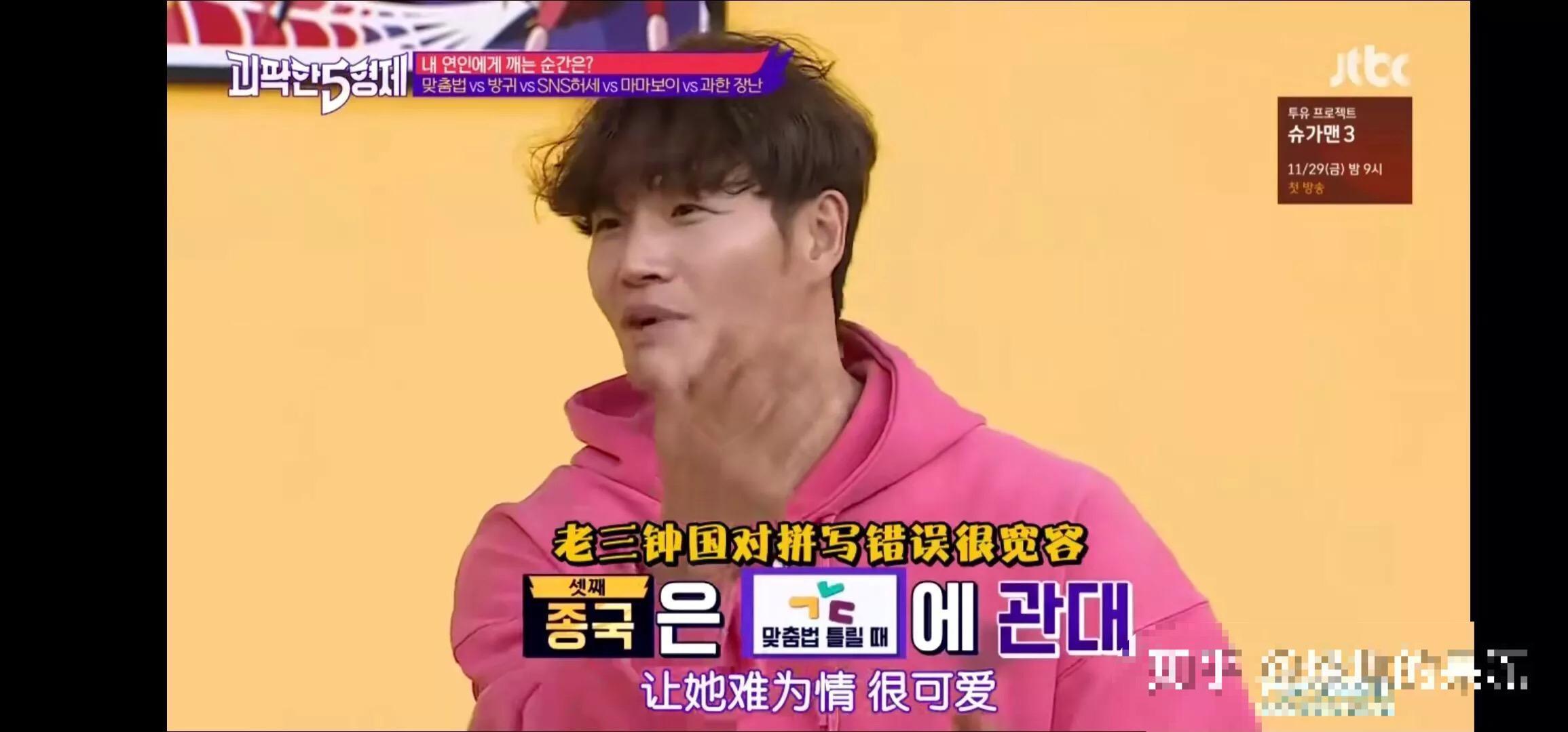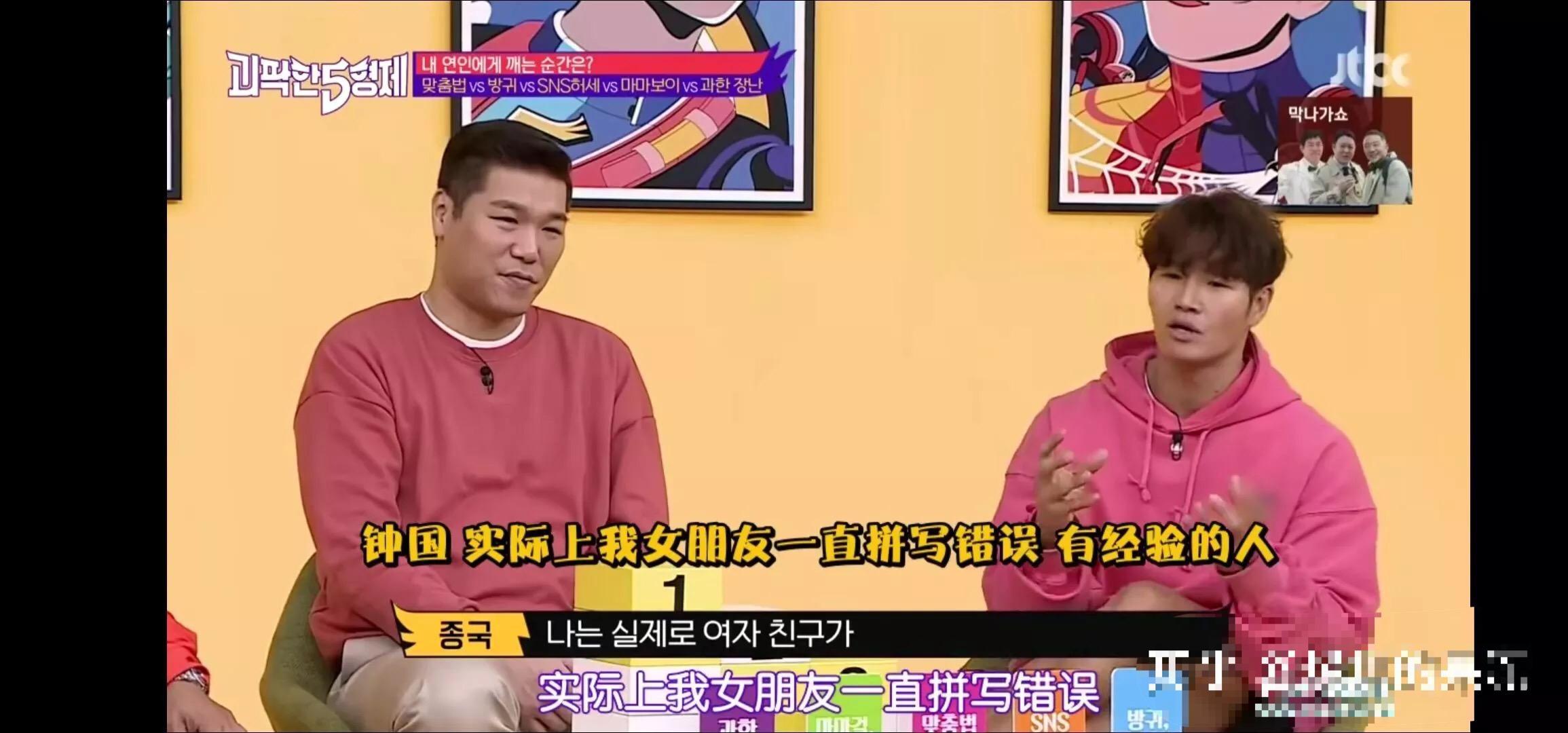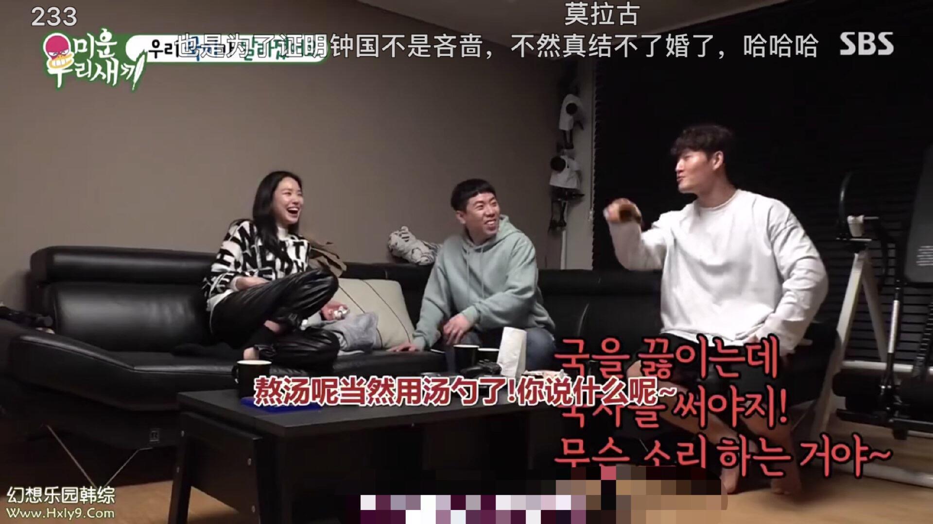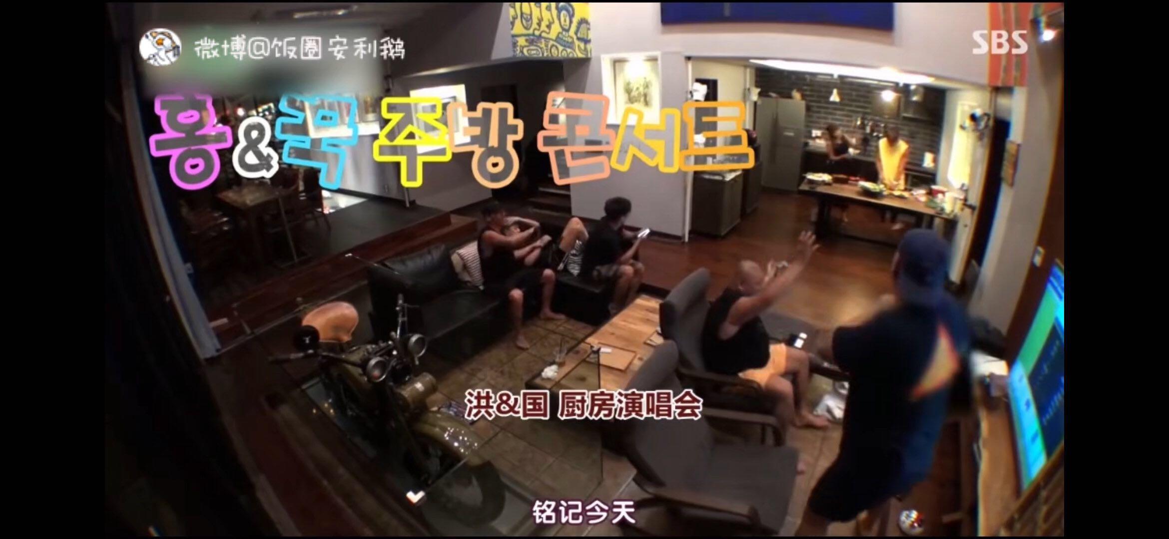 在后来成员们都去厨房做饭的时候只有她呆在沙发上和金钟国梁世灿聊天