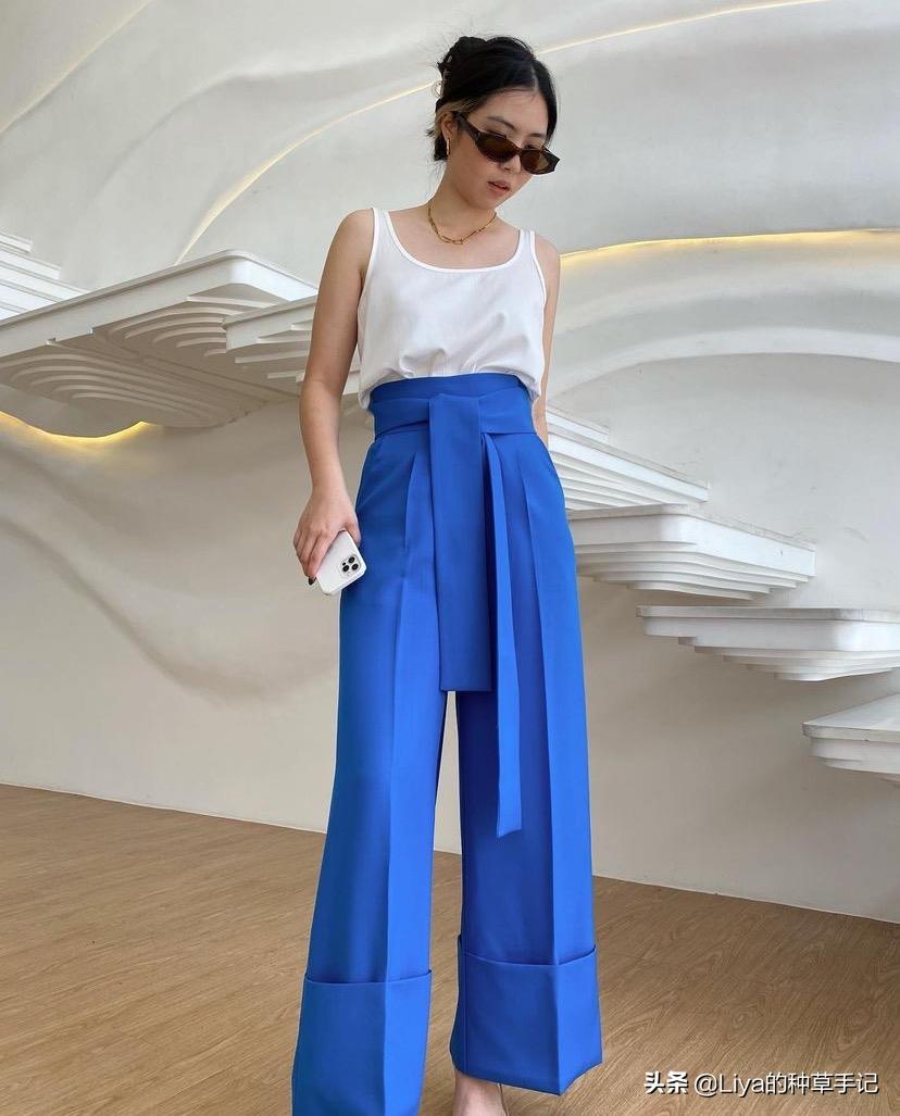 阔腿和亮眼的颜色组合在一起就是双重杀手,要是没有高挑的身材,我们还是趁早say拜拜。