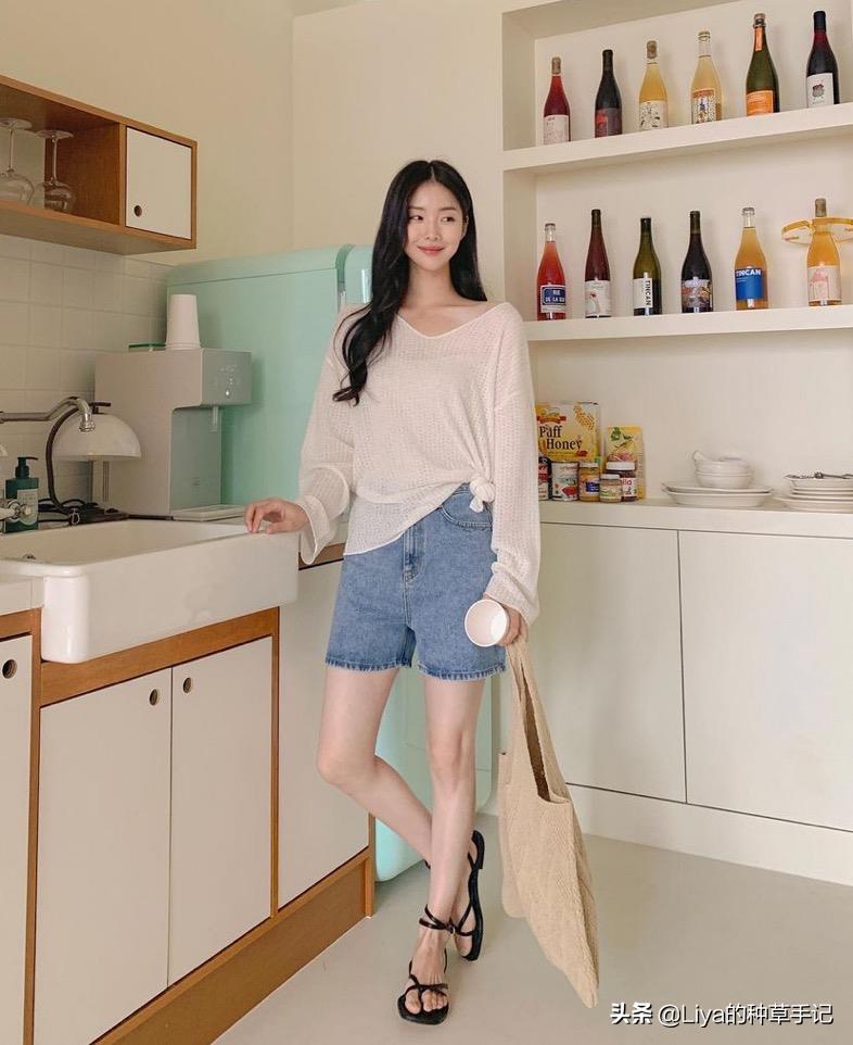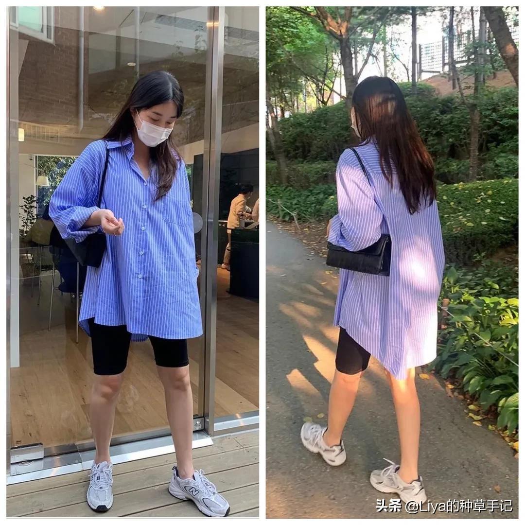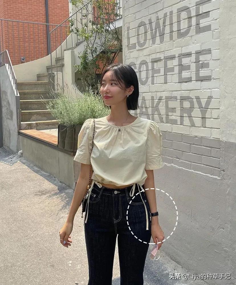 清爽的蓝白色,正是夏日气泡水的感jio!相比较紧身的短上衣,这种宽松型更适合我们。