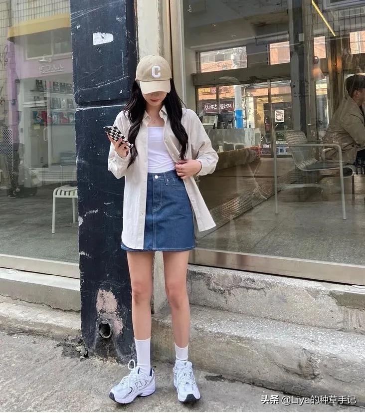 刚好盖过臀部的长度就可以,转移了臀部的视觉中心,还打造了层次感,学生党完全可以pick一下。