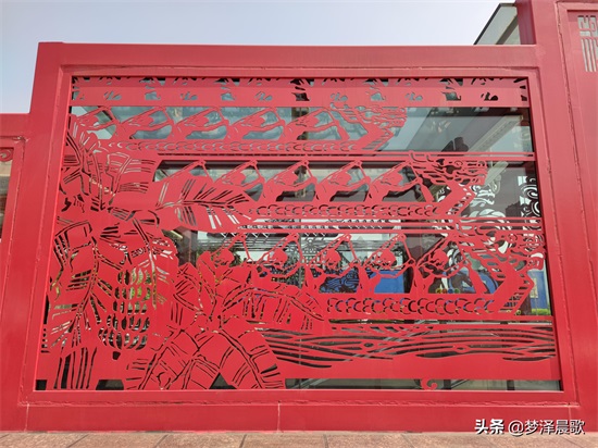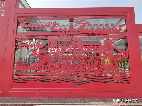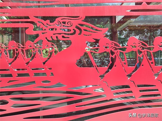 “千灯湖站”入口处整体色调呈红色,入口镂空的文字、赛龙舟等图文并茂,古色古香。文化名城、赛龙夺锦、南国水乡、国泰民安、风调雨顺等字样美轮美奂,格外引人注目,让人赏心悦目。