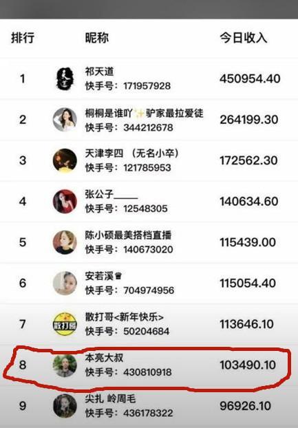 随着当下火爆的网络直播,本亮大叔的收入也是水涨船高。