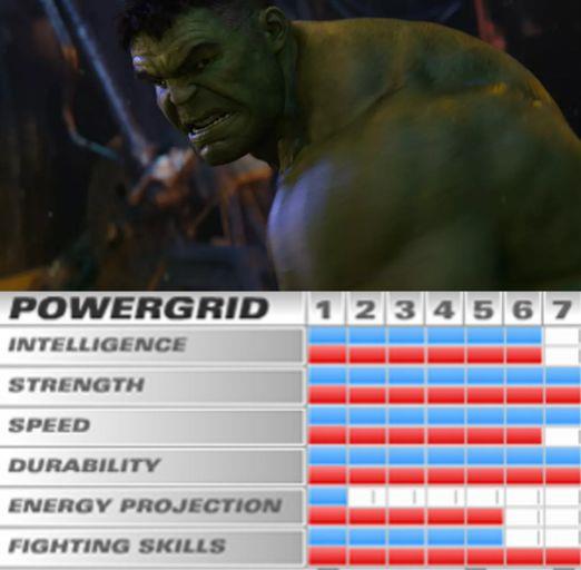 智力:6 力量:7 速度:7 耐力:7 能量投射:1 格斗技巧:5 综合实力5.5
