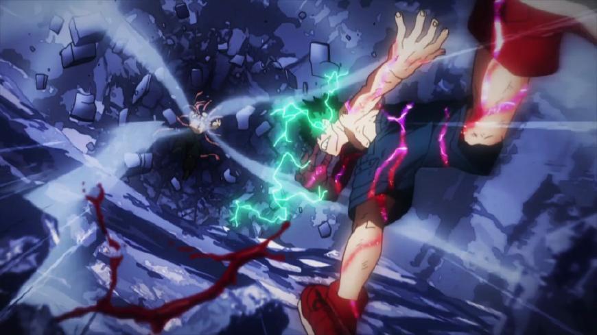 在林间合宿的时候和敌联合肌肉人的战斗堪称是绿谷的最精彩的战斗!为了保护出水,绿谷没有办法选择撤退,只能选择和肌肉人进行战斗。明明是恐怖的杀人犯,绿谷还是用了自己不能承受的力量干掉了对手!