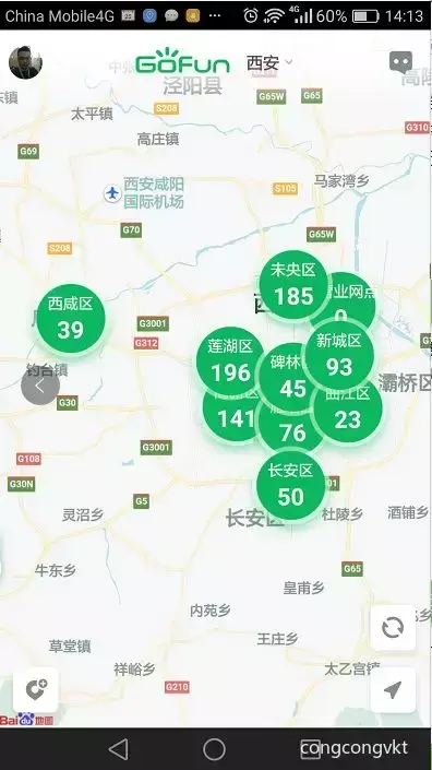 Gofun出现作为最早落座古都西安的共享汽车,在网点的分布上也是最多的一家。可以说非常方便。拥有将近1000个网点的支撑,可以用想走就走。就是车不是那么好抢。点多。车少也是常有的事情。