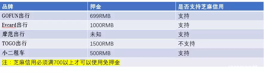 押金 谈价格之前,我们先来看看各家的押金情况。