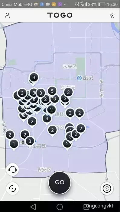 17年12月份。TOGO途歌也正式入驻古城西安。TOGO在入住时自己的介绍中,打造什么“自由,共享,安全”。其最大的特色应该就是,“接力用车”和“政府正规停车点”随便停的特点。网点也是比较多的。这以为着,你不用停到特定的停车位。可以在任何政府规定的收费点停车,大大方便了出行。目前:高新和南郊这边的车是比较多的。