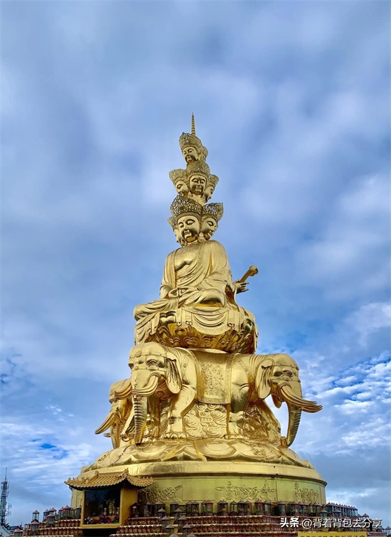 十方普贤菩萨,坐落于世界文化与自然遗产,峨眉山景区内三零七十九米的金顶,红日出东方,金顶现佛光,这是世界上最高的金佛,佛像高四十八米,重大六百吨,普贤菩萨的十个头像,分为三层,神态各异,代表着世人的十种心态,也是游玩峨眉山必打卡的景观之一