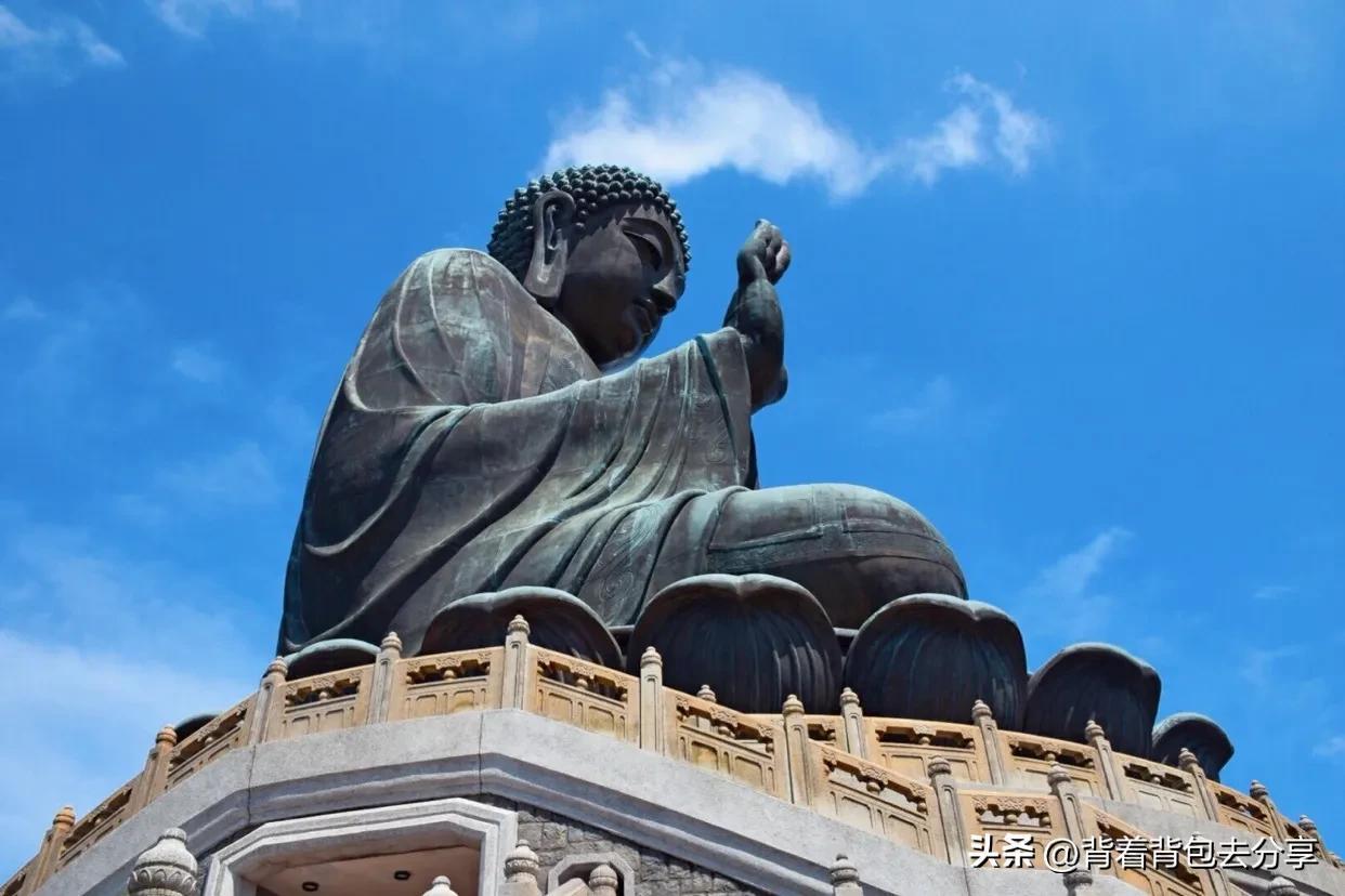天坛大佛,全球最高的户外青铜坐佛,它也是当今世界上最大的露天佛像,巍峨趺坐于海拔四百八十二米的香港大屿山木鱼峰上,佛像通高三十四米,重五吨的佛面,在浇筑时加入了两千克黄金,是真正的金佛,也是香港重要的地标,并吸引众多中外信徒和游客,前来朝拜与观光