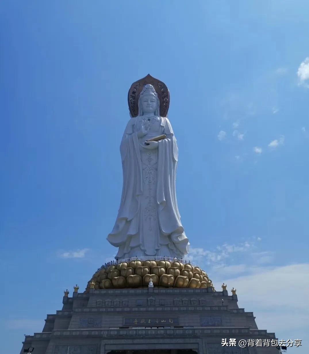 海上观音,是南山文化旅游区的一个景点,三体为正观音,一体化的三尊造型,观音正面手持莲花,另一面手持经书,还有一面手持佛珠,宝相庄严,脚踏一百零八座莲花宝座,圣像高一百零八米,是世界上最高的观音像,被誉为世界级•世纪级的佛事工程,有兴趣的话,不妨膜拜一下观音的真容