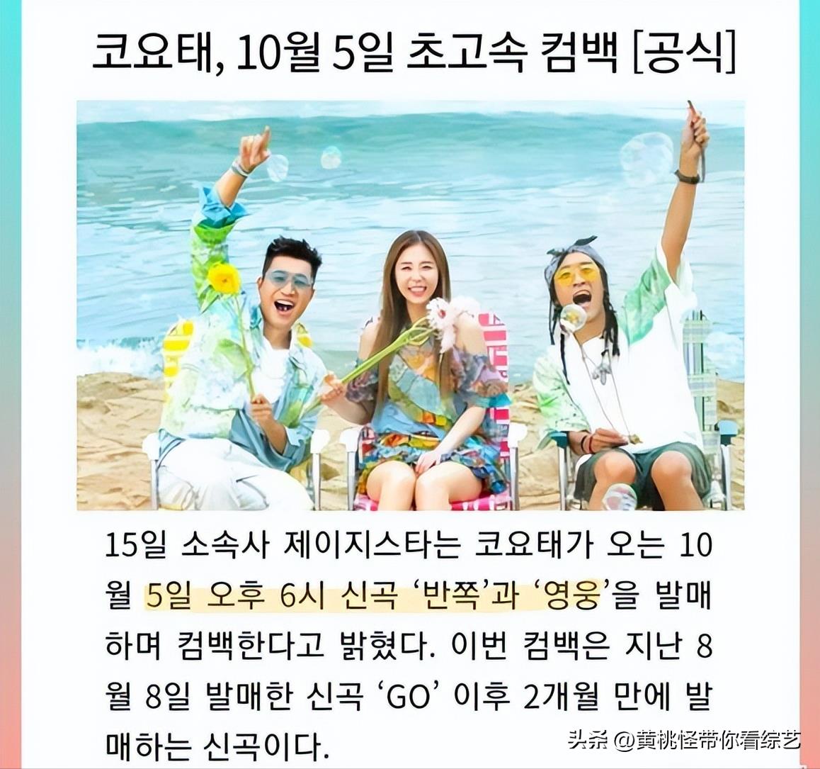 今年高耀太要回归哦,最新消息,经纪公司透露于10月5日会发布新曲《一半》和《英雄》,有喜欢的朋友可以期待一下,大家喜欢高耀太的歌曲吗?其实有些旋律一旦响起你就会很熟悉,但对歌名不太了解