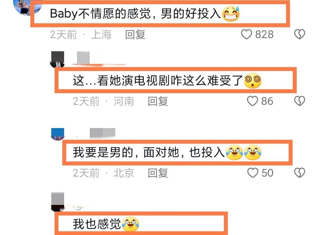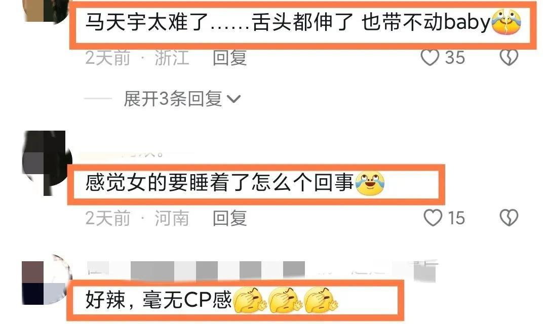 对于两人的吻戏,有网友指出,Baby一脸不情愿的样子,甚至给人一种快要睡着的感觉,而马天宇却很投入。两人的吻戏辣眼睛,毫无CP感可言。