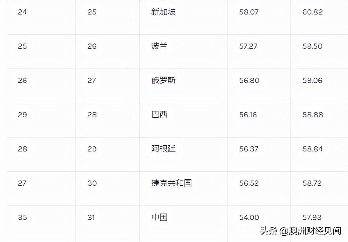 首次发布了完整的国家排名和分数列表,为新增 10 个国 家/地区的潜在变化提供了足够的背景。