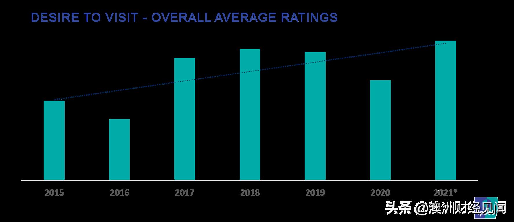 对 2015 年至 2020 年的 50 个国家品牌指数 (NBI) 国家和 2021 年的 60 个衡量国家进行的纵向分析表明,旅行欲望如何在 2015 年至 2016 年间下降,在 2016 年至 2018 年间增加,然后在 2018 年至 2020 年间再次下降。然而,到了 2021 年,参观的欲望水平已经上升到了最高点。