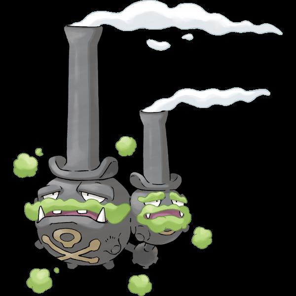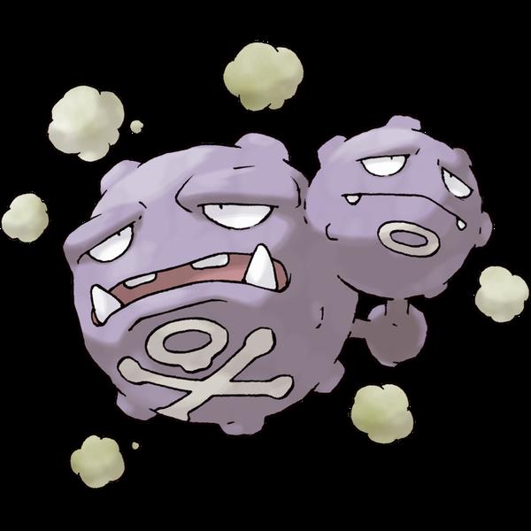 双弹瓦斯像是组合在一起的两个宝可梦,由连接点连接在一起。