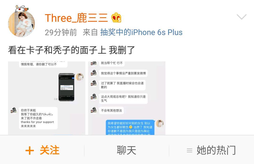 随后女主也是把微博删除了,表示在今晚的直播中会有一个说法