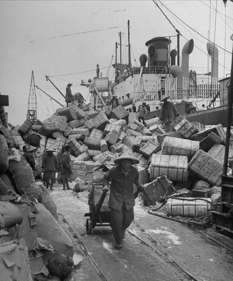 1947年2月27日,一名国民党警员与商贩在台湾大街上发生争执,吸引了围观群众的目光。