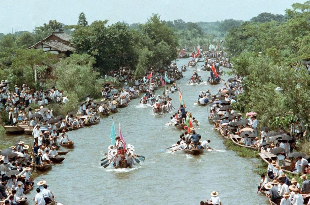 杭州余杭苍前镇举行盛大的龙舟表演,几十条龙舟竞渡,精彩纷呈(2004 年 6月22日)。