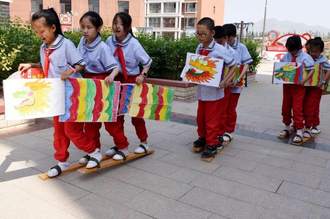 2019年6月4日,河北省张家口市宣化区朝阳街小学学生用自制道具参加“旱地龙舟”比赛。新华社发(陈晓东摄)