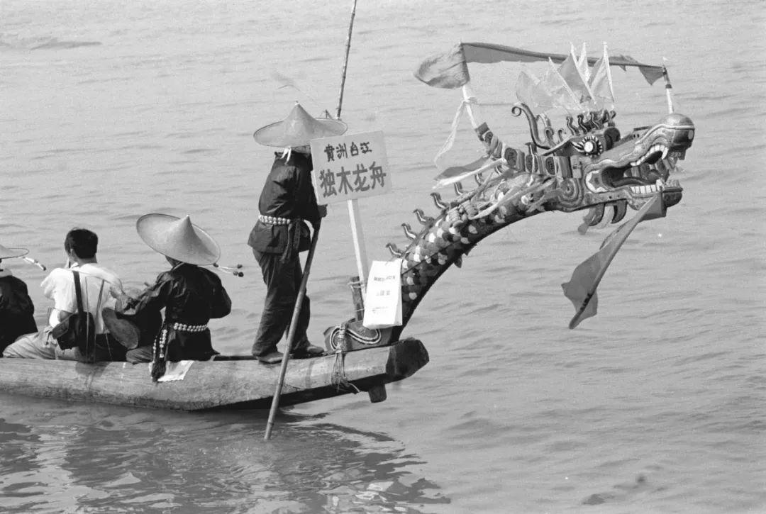 1994年端午节时期,湖南岳阳举办了一次别开生面的首届全国民间龙舟风采展示大赛。图为参赛的贵州代表队 (1994年7月7日)。新华社记者 龙启云 摄