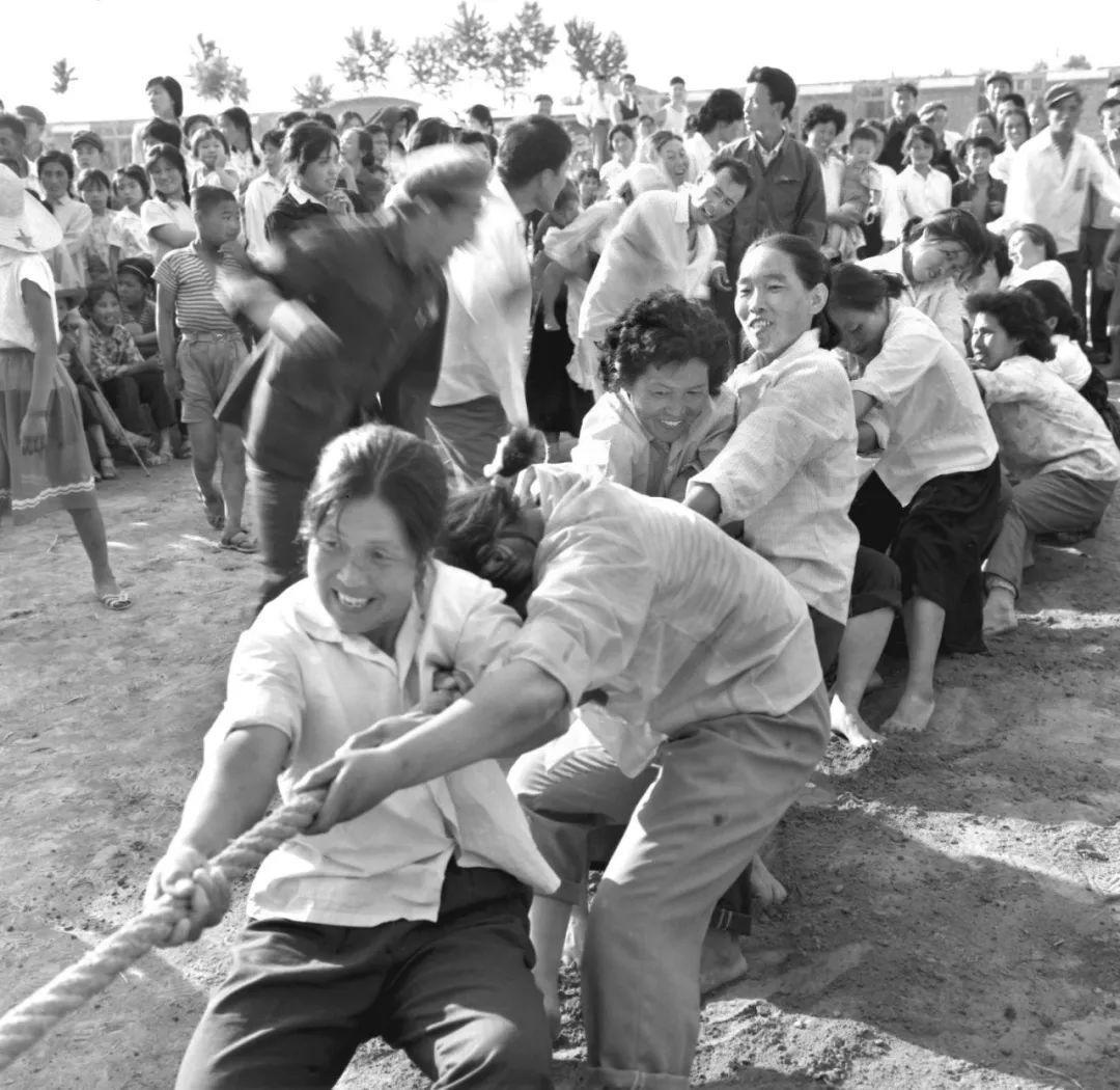 在河北省抚宁县渤海公社朝鲜族大队举行的端午节运动会上,朝鲜族、汉族女社员举行了生产队之间的拔河比赛(1980年7月3日)。新华社记者 贲兰武 摄