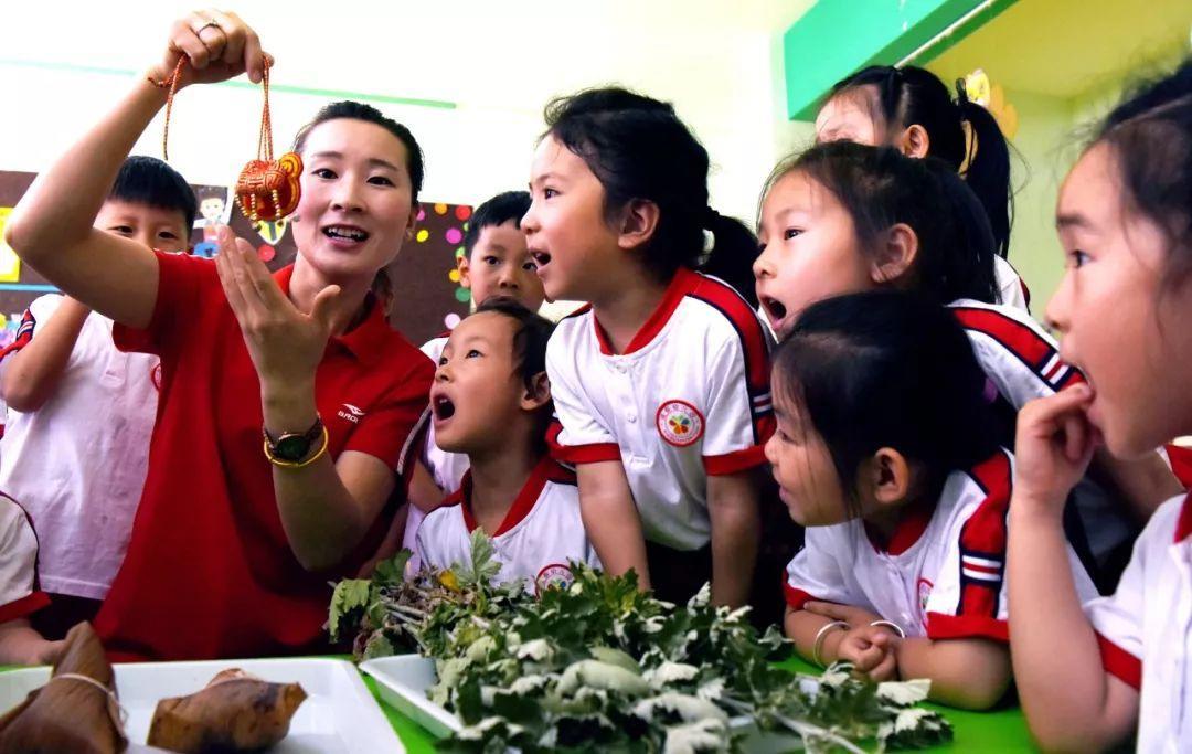 2019年6月4日,在山西省运城市垣曲县滨都幼儿园,老师向孩子们介绍香包。新华社发(崔松良摄)