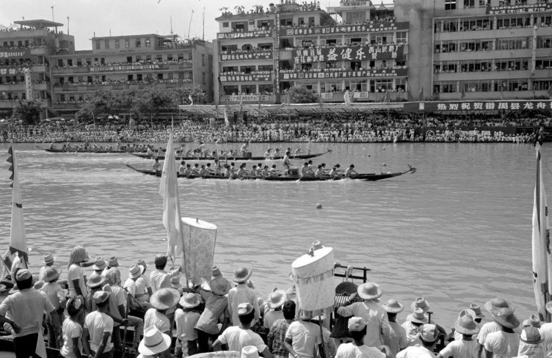 广州市的番禺县市桥镇举行了第二届“希尔顿”杯龙舟赛,25万名观众观看了比赛(1986年6月11日)。新华社记者 刘玉生 摄