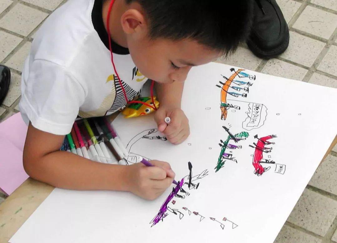 台北市的一名儿童在画板上画龙舟(2002年6月15日)。新华社记者 陈斌华 摄