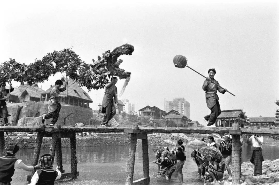 在北京的苗、布依、彝、羌和汉族等17个民族的同胞一千余人汇集在中华民族园,共庆佳节。这是羌族青年在表演“飞龙过江”,祈祝天下太平,风调雨顺(1995年6月2日)。新华社记者 喻惠如 摄