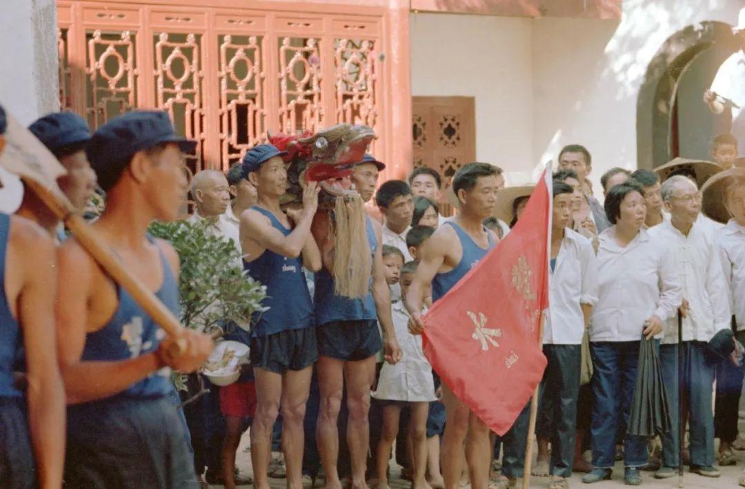龙舟下水之前,水手们抬着龙头到屈子祠,向屈原致敬,以取得夺魁的吉兆(1982年6月1日发)。新华社记者王平摄