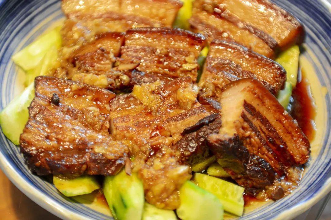 还有一道菜雨小荷不得不说,『蒜泥把子肉』也是很有特色。红白相间,软烂入味的把子肉放在这黄瓜蒜泥汁里打个滚,入口绵软清香,完全没有了油腻之感,平时最多只能吃下一块的把子肉,这么一整,一口气能吃三、四块。