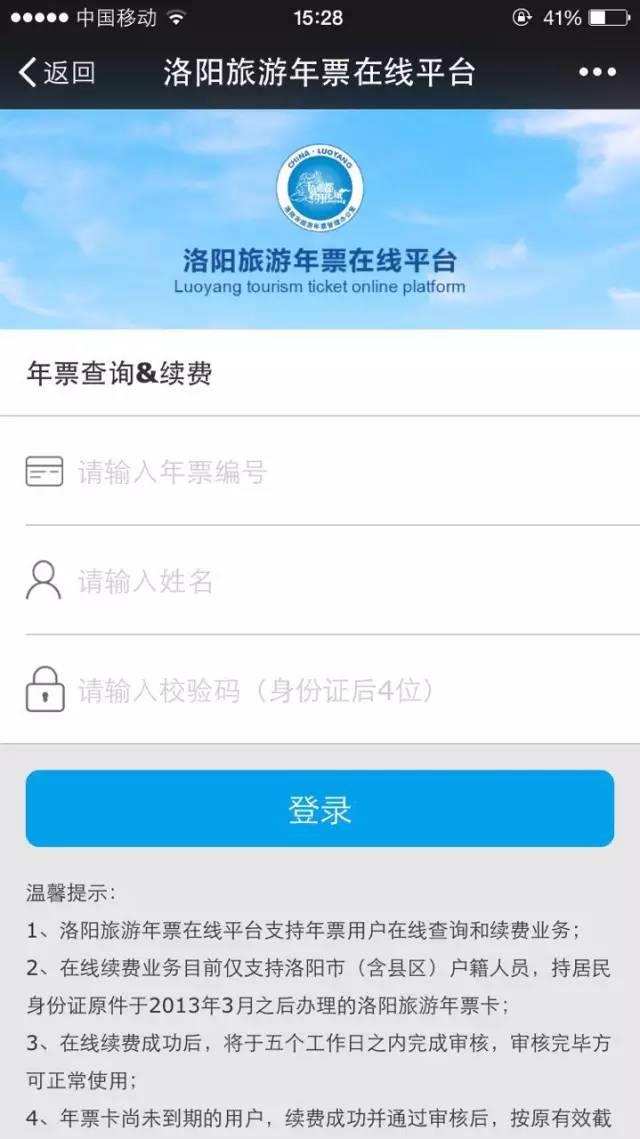 哇!原来洛阳旅游年票那么管用啊,可以去那么多地方啊,现在又可以微信查询和续费哦,可是有些小朋友可能还不太会使用呢,现在让小编再手把手演示一遍,可不要再说不会了哦~~