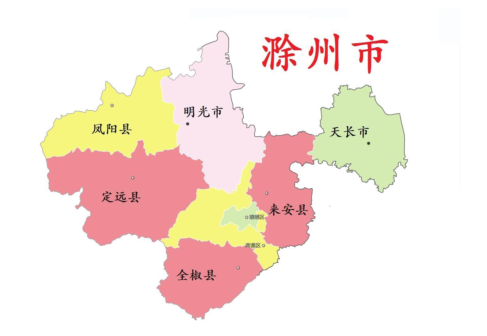 全市总面积13433平方千米,下辖2个区(琅琊区、南谯区)、4个县(全椒县、来安县、定远县、凤阳县),代管2个县级市(天长市、明光市)。截至2022年末,全市常住人口405.0万人。