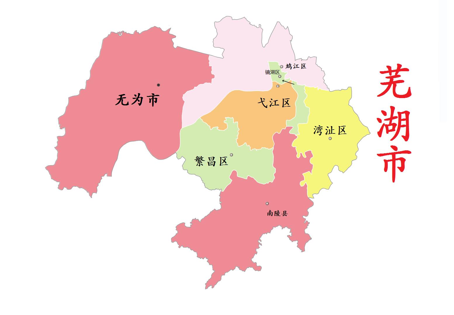 全市总面积6009.02平方千米,辖5个区(镜湖区、鸠江区、弋江区、湾沚区、繁昌区)、1个县(南陵县),代管1个县级市(无为市)。截至2022年末,芜湖市常住人口373.1万人。