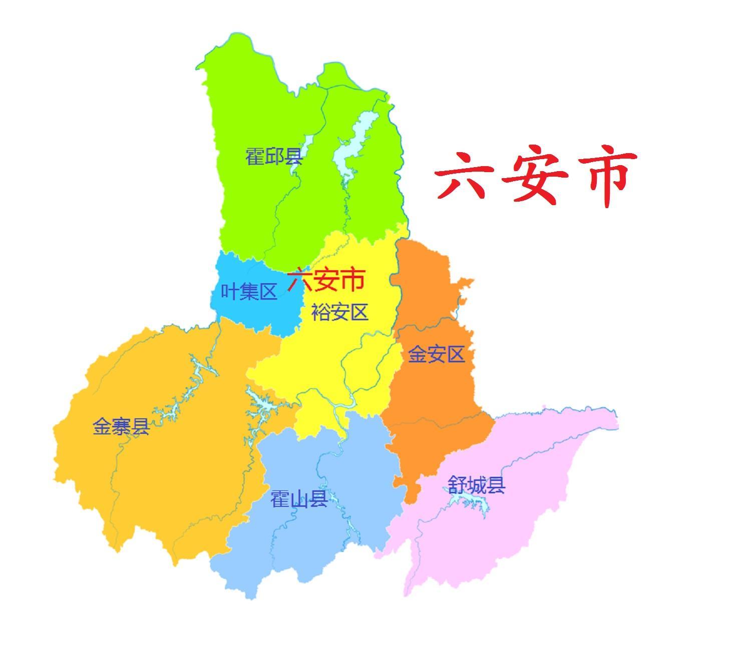 六(lù)安市,市政府驻金安区。位于安徽省西部,东邻省会合肥市,南接安庆市和湖北省黄冈市,西与河南省信阳市毗连,北接淮南市与阜阳市。