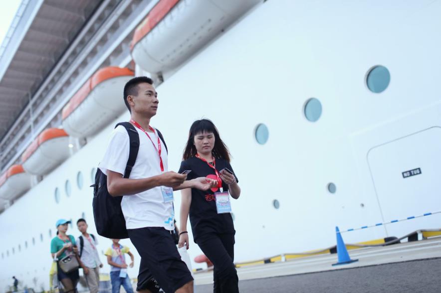看到邮轮我非常震撼,这么大的船真是第一次见。在我们家那边,我最大只见过远远开过的LNG运输船,我感觉这个游轮比LNG还要大!它有十八层,我想这吃水该有多深啊。