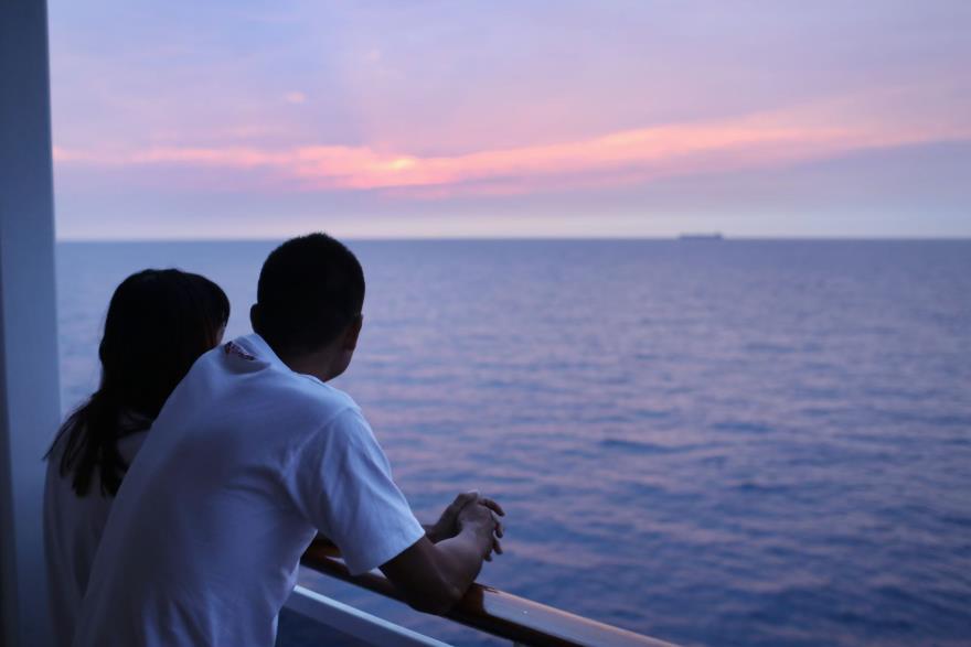 在船上,我们像两个小年轻,很自由,每天想着去这儿玩、去那儿玩。我和老婆在船上看海上的夕阳,有种和每天都不一样的感觉,好像回到结婚前谈恋爱的时候。