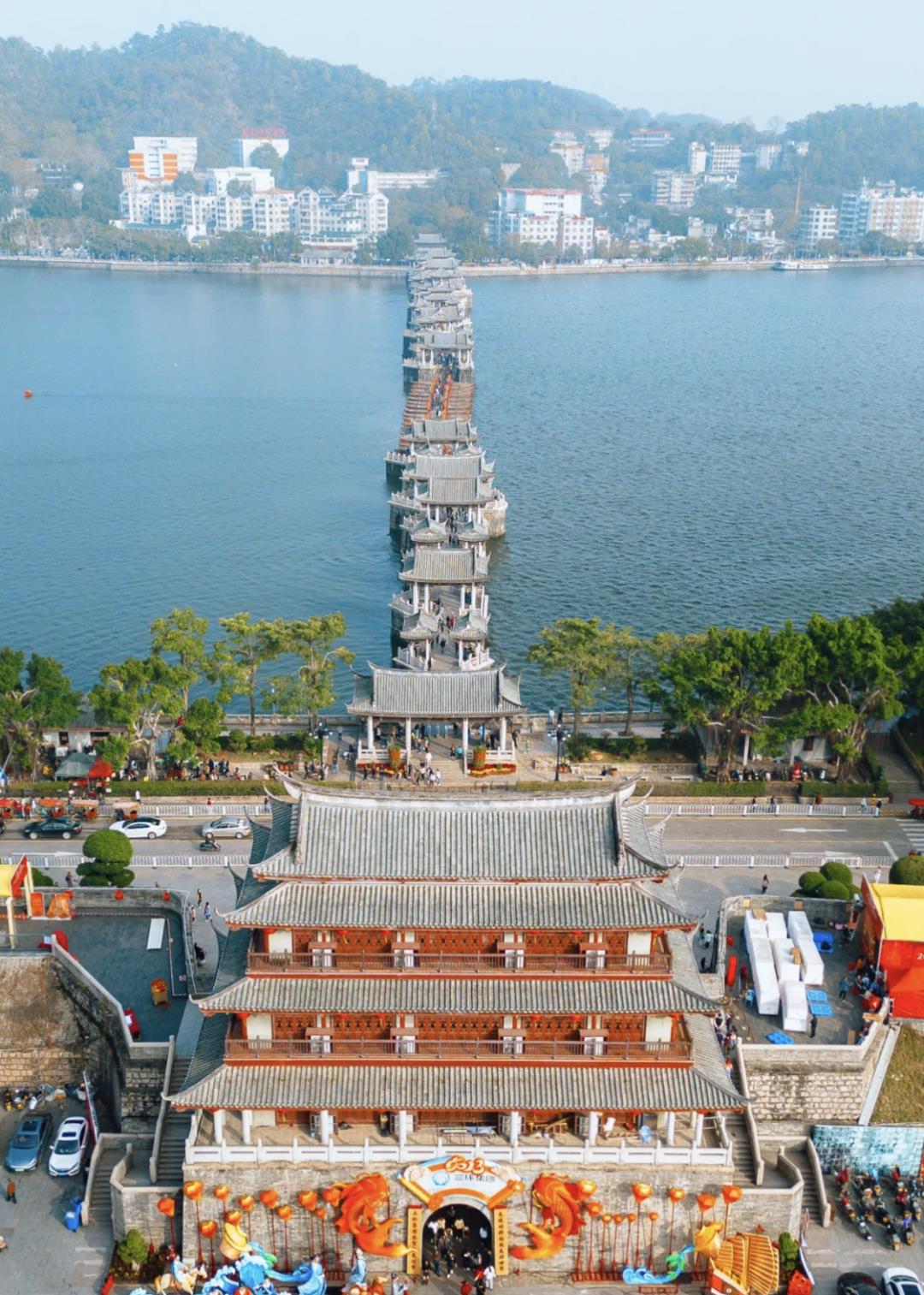 当地有句民谣:到潮不到桥,白白走一场。广济桥横跨韩江,最特别的是桥心由18艘木船连接而成,每天都会上演“过河拆桥”和“拼船搭桥”的场景。