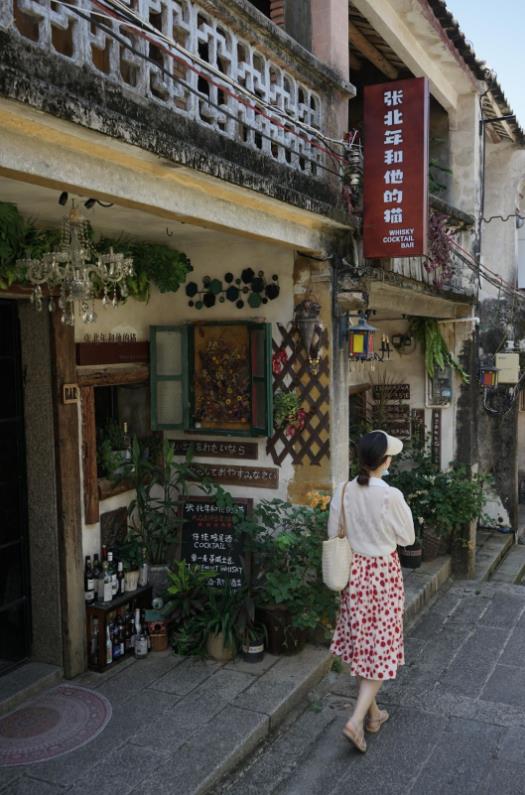 翻新后的古镇,少了原住民的烟火气,透过斑驳的墙身依稀能看见古镇的历史。乘坐叮叮车、游船,游走在古镇每个角落,用镜头记录侨乡的新面貌。