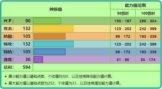 注:技能参照第八世代游戏技能表。技能里粗体字的招式为具有属性一致加成效果的招式。招式教学是可以通过招式教学习得。PP则是使用技能次数。