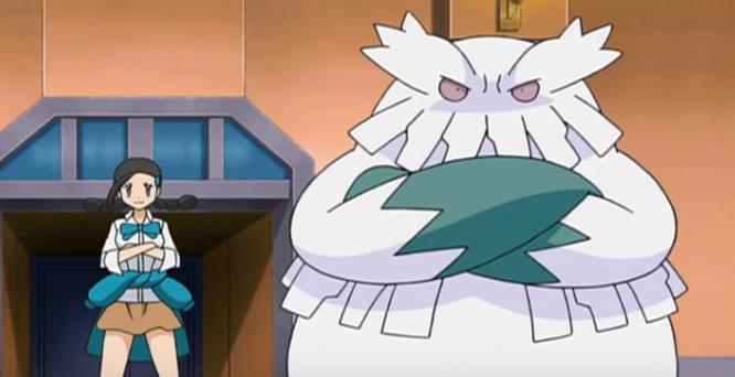 宝可梦 XY第119集,也是宝可梦动画的第917集, 映雪道馆对战!冰冻的对战区!! 中,得抚与小智的首战中,派出暴雪王应战。