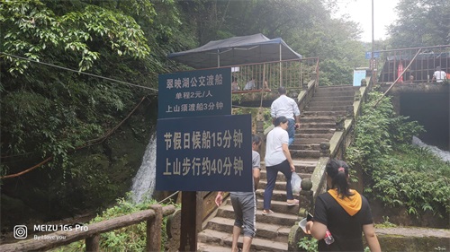 白云索道下站,往下面走不远的地方,这里有一个有趣地方,映翠湖这里只能坐船,是没有路可以走的哟,大家到这里以后就要在渡口等船来接,两元一人,详情请看图四图五,图六是我坐船过来以后拍的。