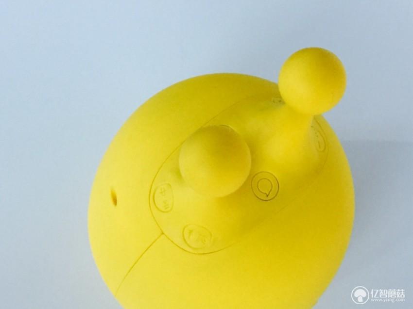 一开机你就会听到麦咭可爱的声音和微笑的脸蛋,头上的两颗圆球也会闪烁(呈橘红色)。这个圆圆的身体的确有些“智慧”,当你触摸或者拍打麦咭的额头时,他会说(播放)不同情绪的提示音。在没有打开开关时麦咭是没有眼睛的小怪物,再打开电源时它会露出弯弯的眼睛,麦咭可不只是会微笑,他的表情系统也是比较丰富的(有弯眼微笑、底眼沉思、平眼凝视 笔者自编表情名称)。