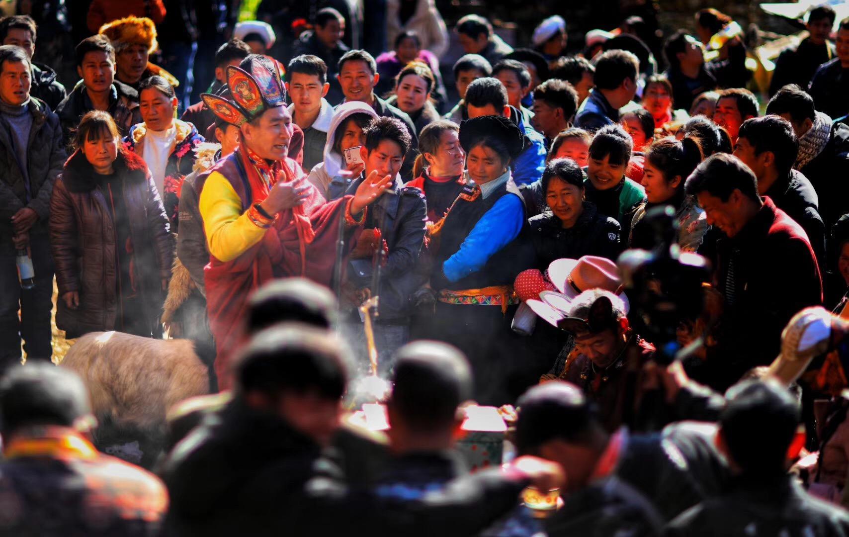 还有的向人群洒青稞面