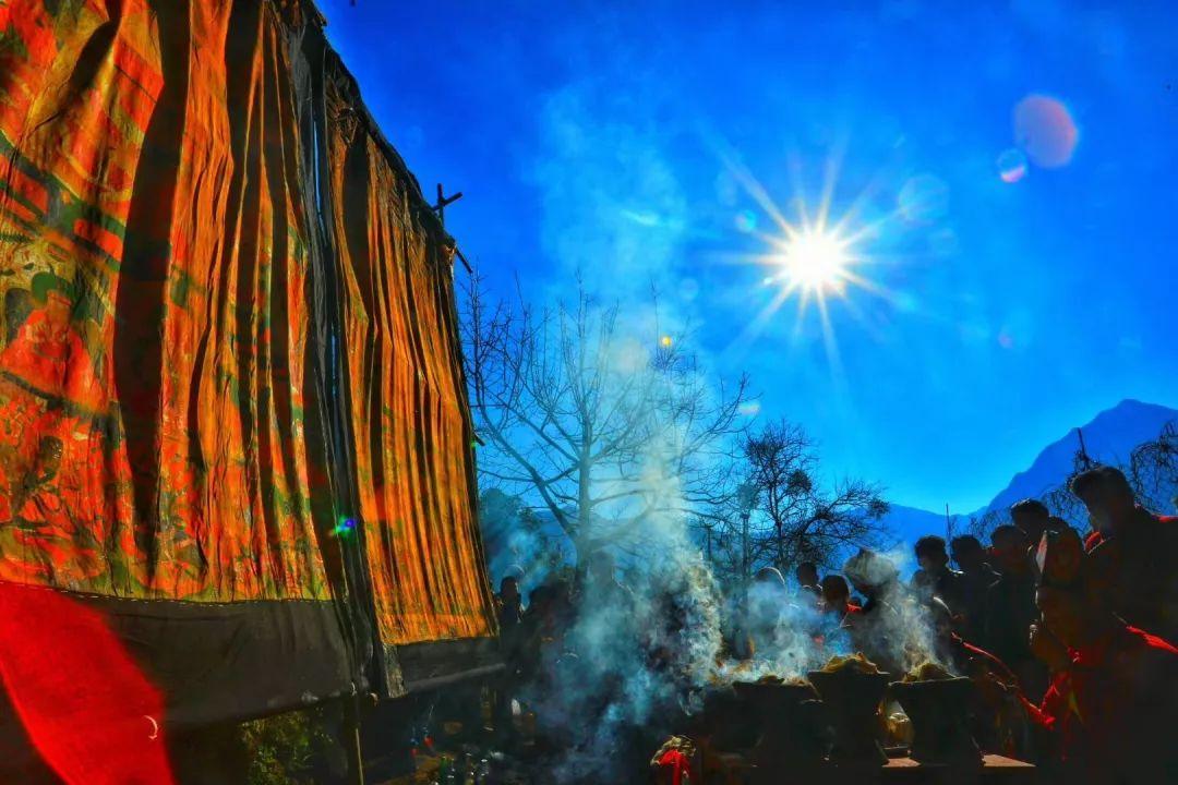 所谓晒佛,就是将平时卷起来保护的巨大佛祖绣像抬出来展示于蓝天白云下,以供广大的善男信女瞻仰膜拜。12月10日(农历冬月十五),雅安市石棉县蟹螺乡猛种村迎来了这个盛大的节日。