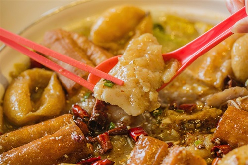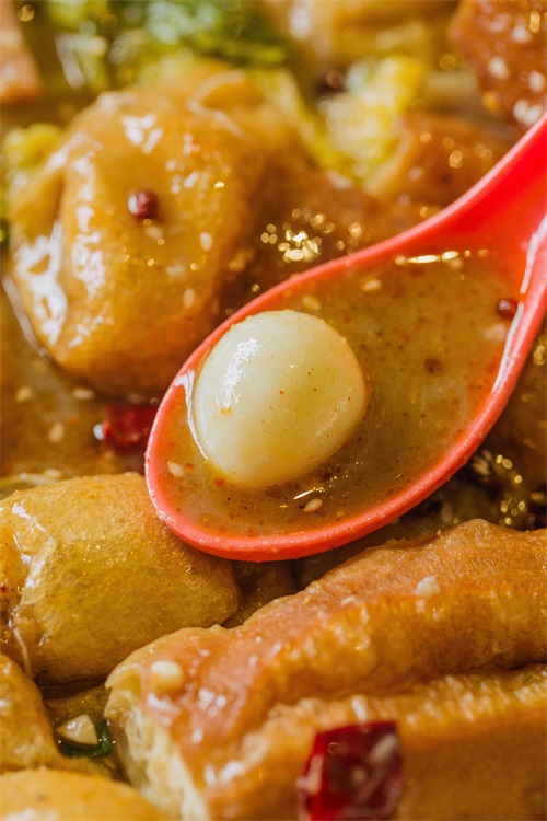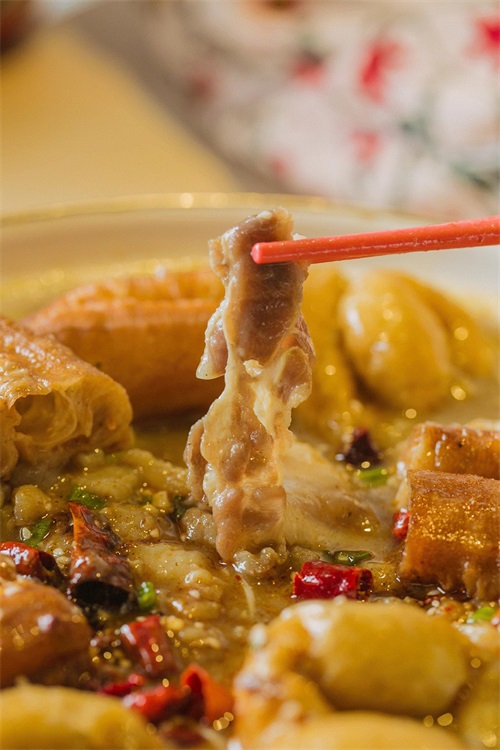 除此之外圆润的鹌鹑蛋、丰腴滑嫩的肥牛搭配浓郁的酸菜汤底,也是一等一的美味。