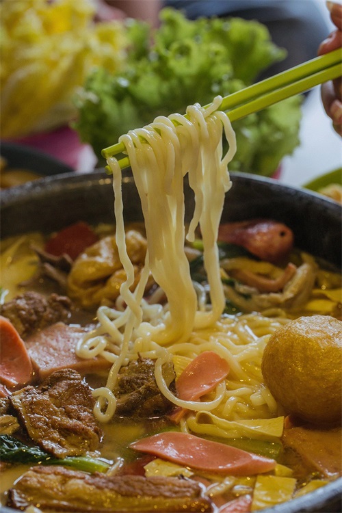 除了鱼肉有讲究,手工鸡蛋面也是无可复制的加分项。面条儿一定得是偏粗散发着麦香味的,才能在长时间的浸泡中慢慢入味而不过咸,筋道十足,弹牙不粘。
