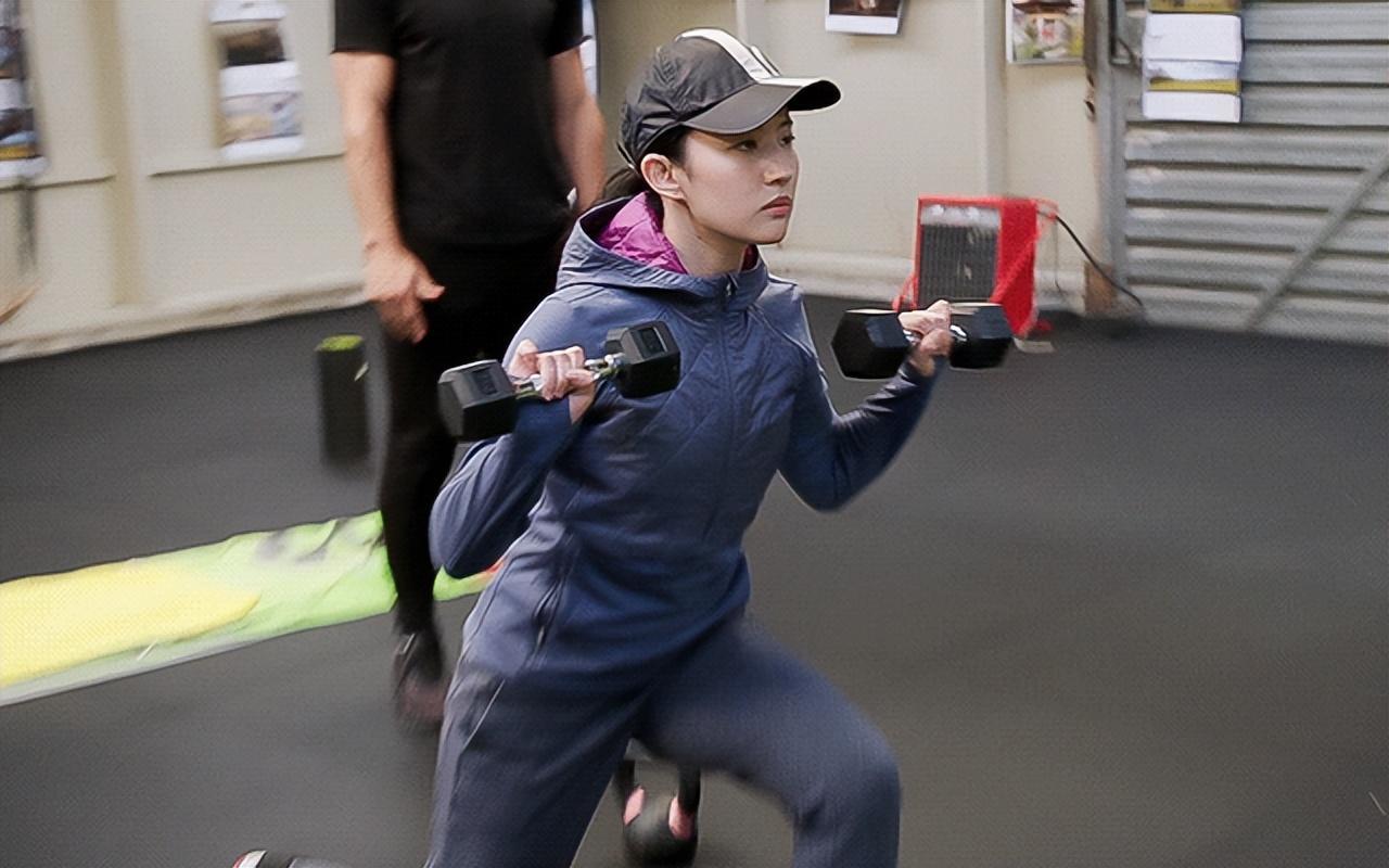 在健身房做着各种健身动作,引体向上、举哑铃、俯卧撑手到擒来,一看就是健身老手了,大汉琉璃的刘亦菲乐在健身其中。