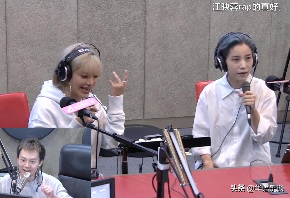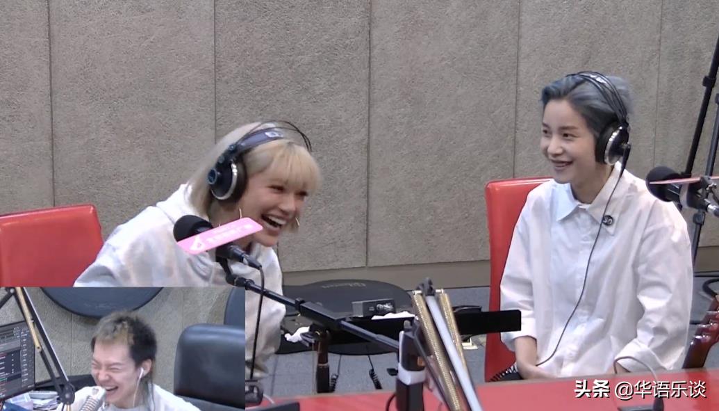 江映蓉一袭白色的卫衣,一头金发,透着一股运动范;李霄云则是简单的白衬衫配黑长裤,蓝中带灰的头发,透着熟悉的文艺范。在直播间,她们相谈甚欢,讲了过去参加比赛和签约天娱后的事情,还讲了音乐上合作的事情,现场她们还相互调侃,嘻嘻哈哈肆无忌惮,把房间的气氛搞得十分火热,都没有主持人插话的份了。