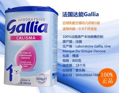 Gallia品牌在国内妈妈心中的知名度不如前面几个高,但是Gallia却是法国本土的奶粉品牌,奶粉由专门从事于婴儿奶粉研究的法国GALLIA实验室研制出品,是法国达能集团的实验室品牌。据说在法国10个宝宝里面就有6个左右的宝宝在喝Gallia奶粉,是法国儿科医生和营养师推荐的首选。Gallia专注于研究婴幼儿奶粉,涉及的辅食几乎没有。完全法国本土生产。